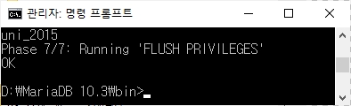 cmd 창에서 MariaDB의 bin 폴더로 이동한 후, 실행한다.