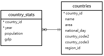 다음 countries 및 country_stats 표를 참조하십시오.