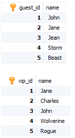 데모를 위해 샘플 데이터베이스의 guests 및 vips 테이블을 사용합니다.