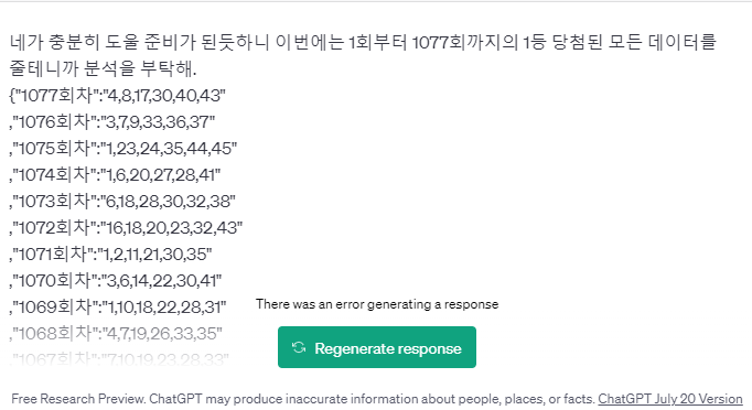 | ChatGPT에게 1076회 로또 당첨 예상 번호를 묻다. (0) | 2023.07.10 |