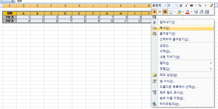 1. 먼저, 변환하고자 하는 영역(데이터)을 선택하여, 복사한다.
