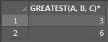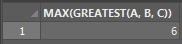 SELECT GREATEST(A, B, C) FROM T;
