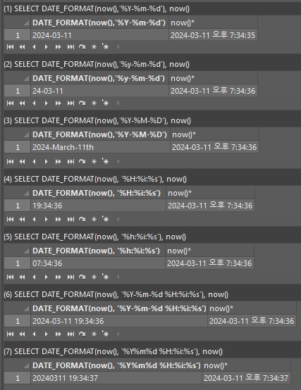 (7) SELECT DATE_FORMAT(now(), '%Y%m%d %H:%i:%s'), now();