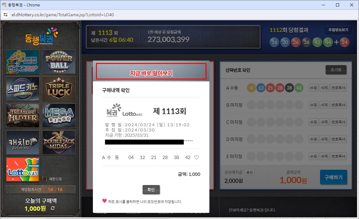 - 복권은 만 19세 이상만 구매할 수 있습니다.