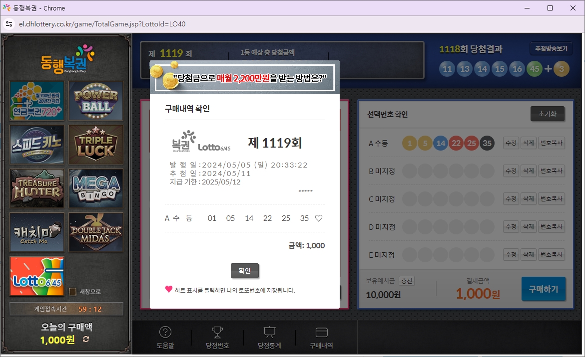 - 모든 로또 구매는 개인의 판단과 책임하에 이루어져야 합니다.