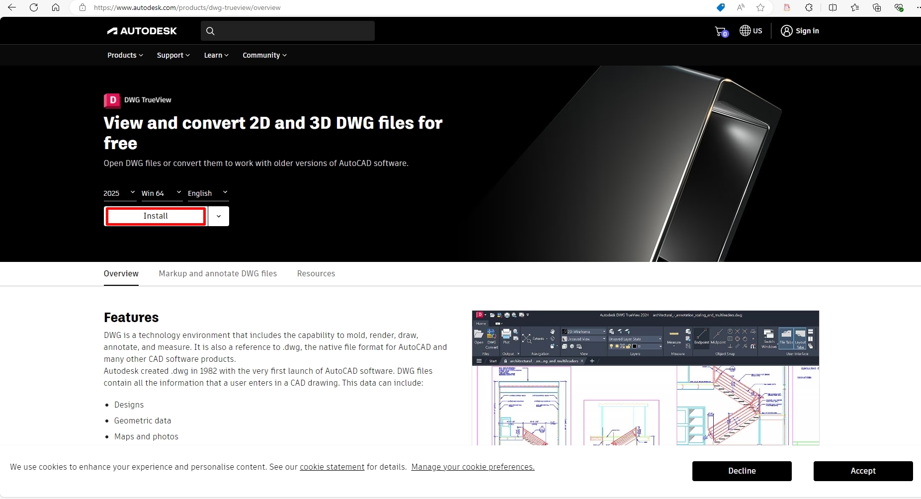 "Autodesk_DWG_TrueView_2025_en-US_setup_webinstall.exe " (2024.06.27. 기준)