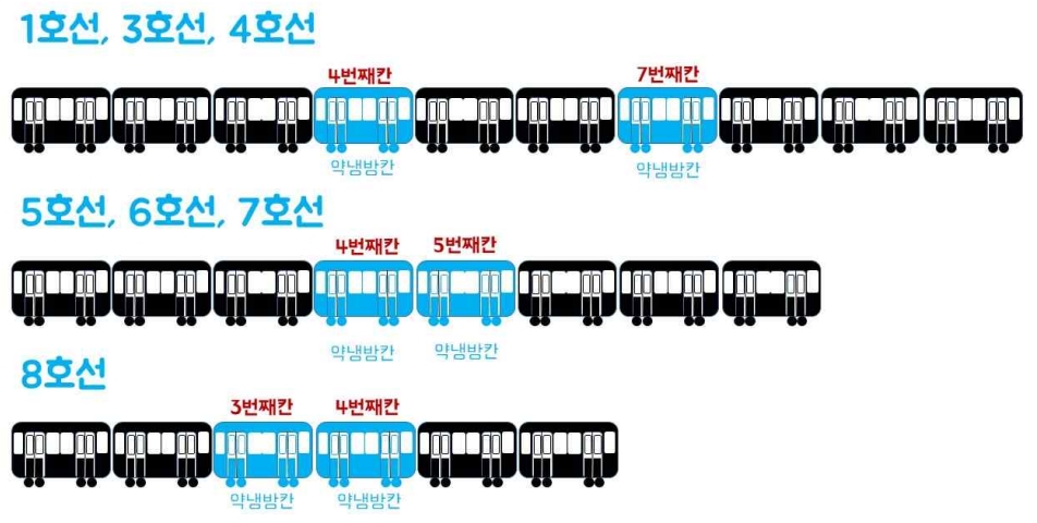 1, 3, 4호선의 약냉방칸은 4번째·7번째 칸,