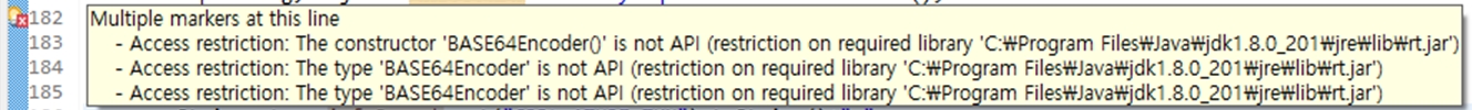Access restriction: The constructor 'BASE64Encoder()' is not API