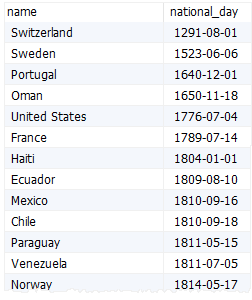 order by national_day;
