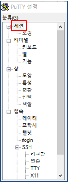 이를 해결하기 위해 PuTTy 설정 창에서 분류(G)의 "접속 > SSH > 키교환" 으로 이동한다.
