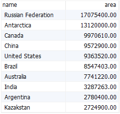 limit 절을 사용하여 n번째 행을 가져올 수 있습니다. 예를 들어 두 번째로 큰 국가를 얻으려면 다음 명령문을 사용합니다.