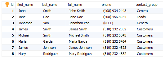 우리는 시연을 위해 contacts 테이블을 사용할 것입니다.
