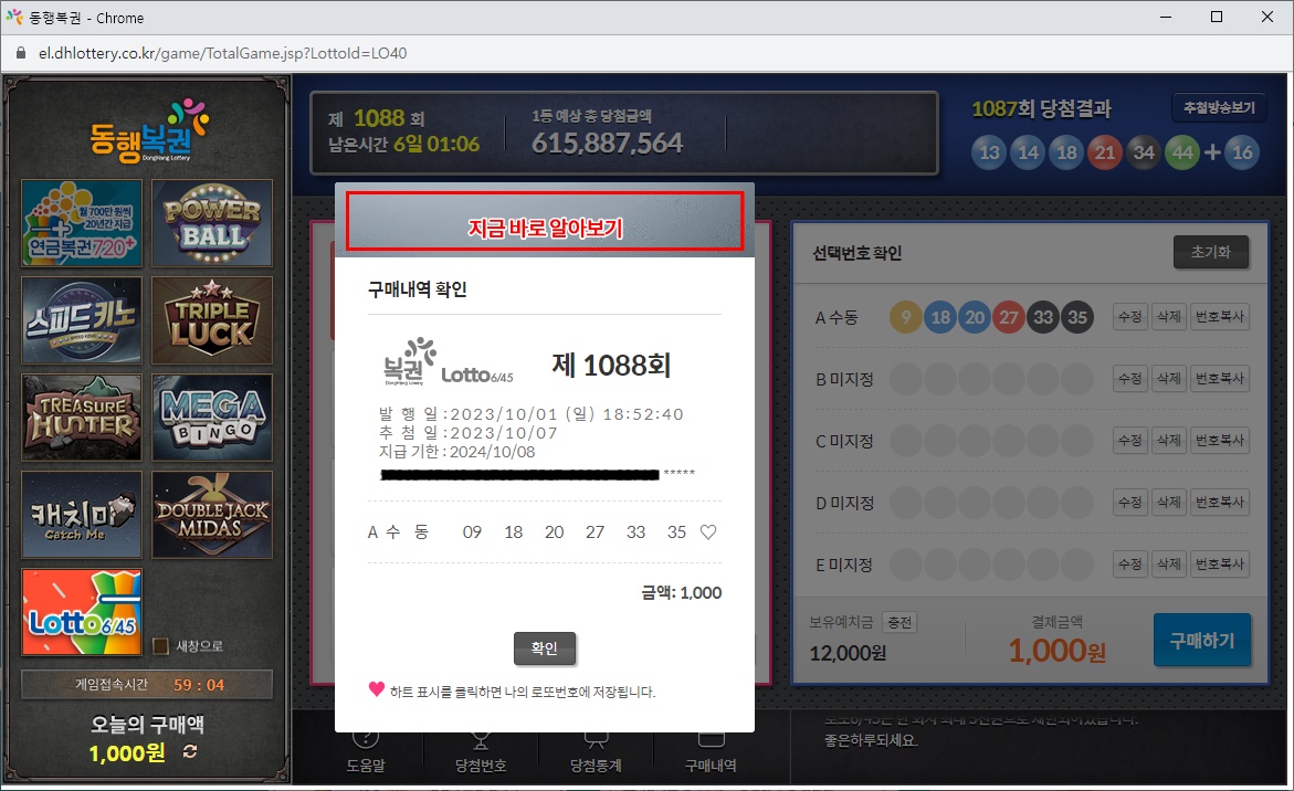 1087회 로또 당첨 결과와 구매하신 번호의 당첨 여부를 안내드리겠습니다.