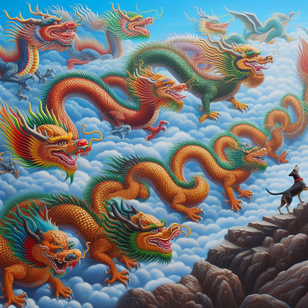 하지만, 마지막 이무기 꼬리에 개가 물고 있는 것은 약간의 방해나 장애물이 있을 수 있음을 암시합니다. 하지만 이는 일시적인 것일 수 있으며, 개의 크기나 상태에 따라 그 의미가 달라질 수 있습니다.