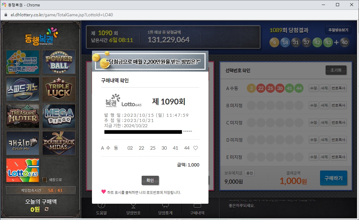 1090회 로또 당첨 예상 번호 (2023.10.21. 추첨), feat. CLOVA X. Cue: