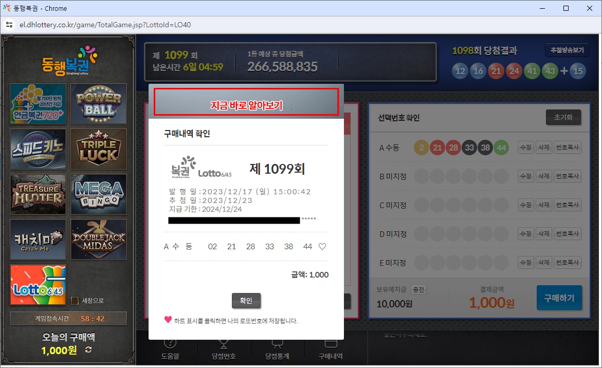 1099회 로또 당첨 예상 번호 (2023.12.23. 추첨), feat. Cue: