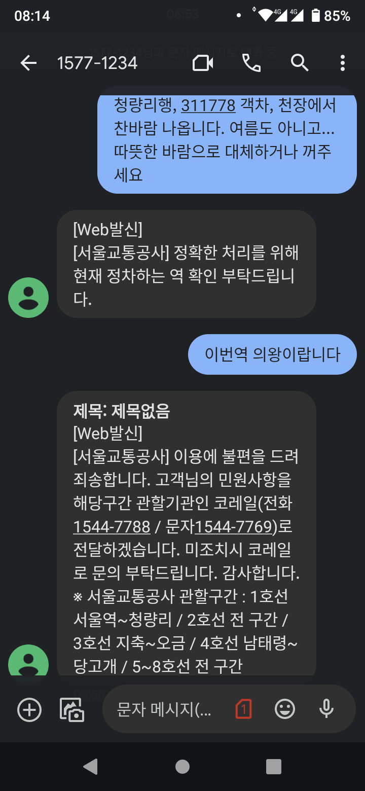 지하철(1호선) 민원문자를 넣어 봤나요?