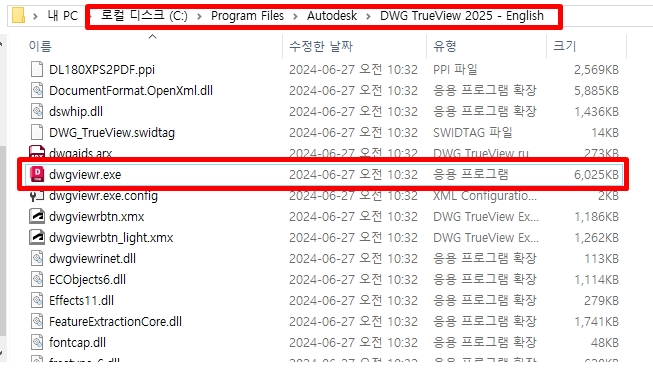 "Autodesk_DWG_TrueView_2025_en-US_setup_webinstall.exe " (2024.06.27. 기준)