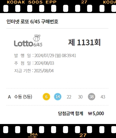 5등 당첨도 꽤 운이 좋으셨다고 할 수 있겠네요.