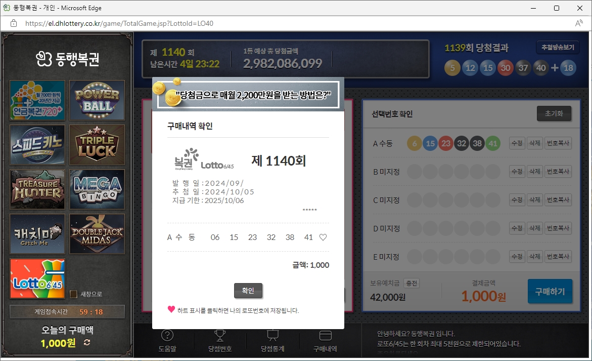 1140회 로또 당첨 예상 번호 (2024.10.5. 추첨), feat. Claude