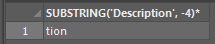 SELECT SUBSTRING('Description' FROM -8 FOR 4);