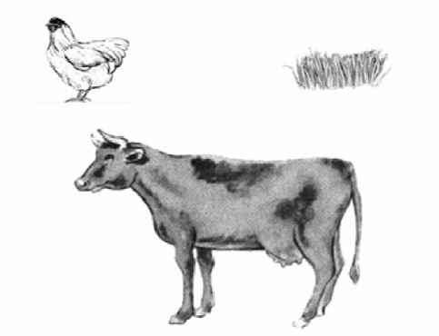문제2. 소는 닭과 풀 중 무엇과 가장 자연스럽게 짝 지을 수 있을까요?