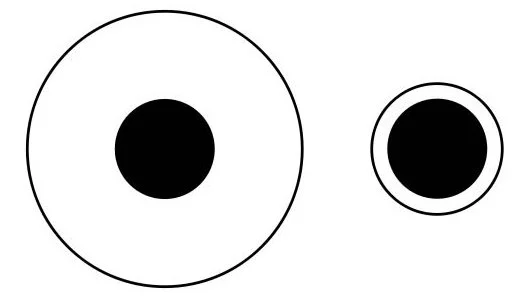 그러나 한 점을 큰 원으로 둘러싸고 다른 점을 작은 원으로 둘러싸면 갑자기 두 번째 점이 더 커 보입니다.