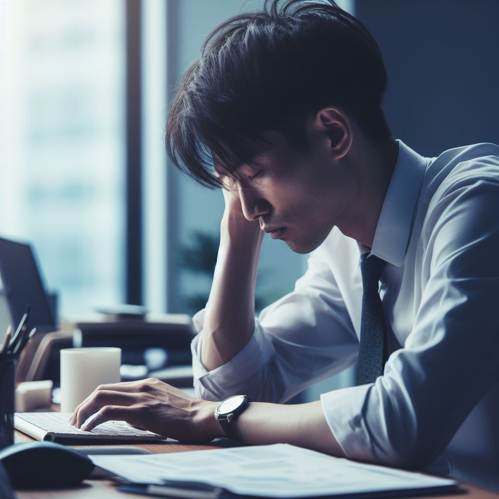 DALL·E, 나의 하루의 대표 이미지를 부탁해 꺼져가는 나의 하루 꺼져가는 나의 하루 기상 출근 오전 근무 점심 식사 오후 근무 퇴근 후, 저녁 귀가 현자타임 어? ?? 꿈나라 r-ayo.com 꺼져가는 나의 하루, 지친 하루, 업무에 시달리는 직장인의 모습 DALL·E 2023.11.09
